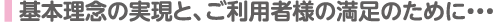 この基本姿勢を変えることなく、私どもはお一人お一人のご要望にしっかり耳を傾け、最善のサービスを提供いたします。「ご利用者の皆様に喜んでいただく」それが私どもの喜びや誇りであり、基本理念です。