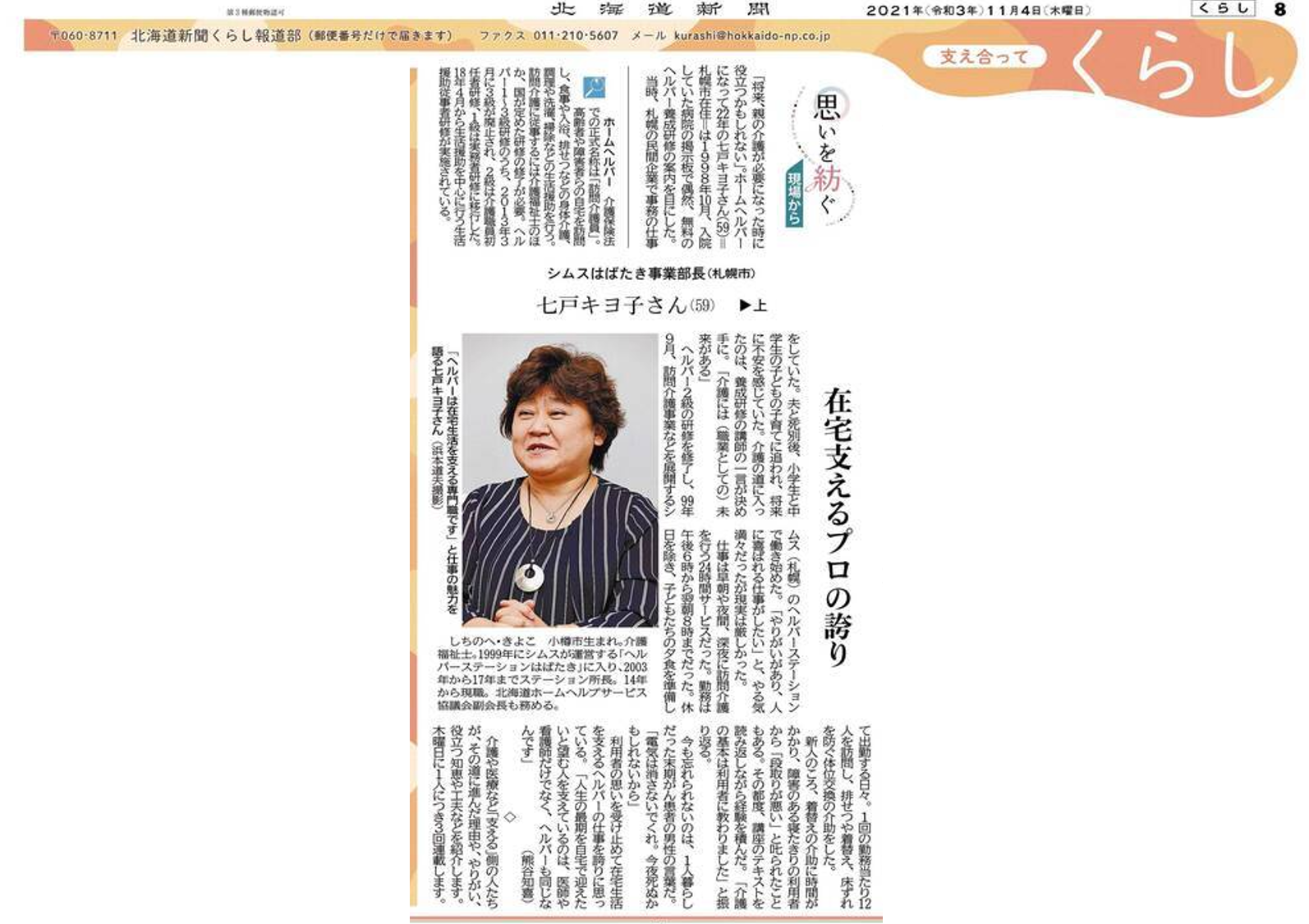 11月4日の朝刊にてインタビュー記事が掲載されました。